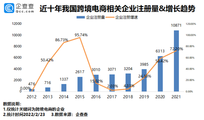 对此,业内人士分析,即使在外界都认为今年亚马逊比去年艰难的情况下,运营薪资依然水涨船高,说明跨境电商赛道依然火热。根据企查查数据,2021年,我国新增注册的跨境电商相关企业超过1万家,同比增长72.2%,增量为近十年之最。