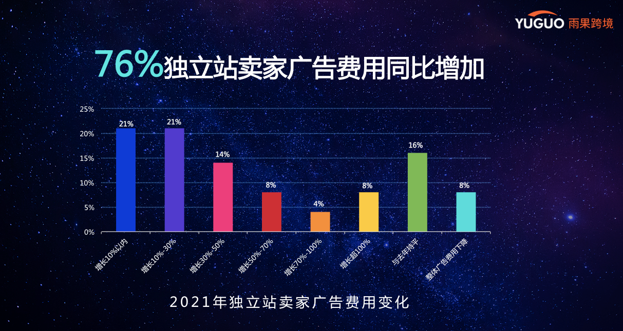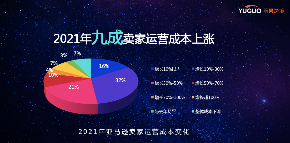 过去的一年跨境电商行业风云变幻,在全球疫情、平台政策变更的大背景下,洗牌、内卷贯穿整个行业。根据雨果跨境调研显示,与2020年相比,有90%的卖家运营成本出现增长,有21%卖家的运营成本增长50%以上。过往中国卖家在全球电商市场的竞争中所依赖的“法宝”——成本优势,已经开始逐步丧失。而运营成本的大幅攀升,也导致2021年很多卖家的利润下降明显。此外,亚马逊封号潮爆发,流量红利逐渐衰退,卖家因去库存低价甩卖,加剧行业内卷。