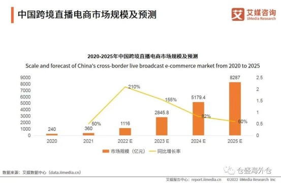 2020年在疫情的冲击下,直播电商模式全面爆发,“直播+电商”的新零售业态加速兴起。现今,无论是中国还是海外,直播已成当下极其热门的流量新风口。2020-2021年,中国跨境直播电商的市场规模呈上升趋势,据艾媒咨询预测,跨境直播电商未来四年内还会保持持续的增长趋势,2022年市场规模将超过一千亿元,同比增长率高达210%。随着TikTok电商平台的迅速发展,各大平台也将兴起跨境直播电商,Youtube、Facebook、亚马逊纷纷上线直播带货,2022年海外直播电商在跨境领域或将崛起。