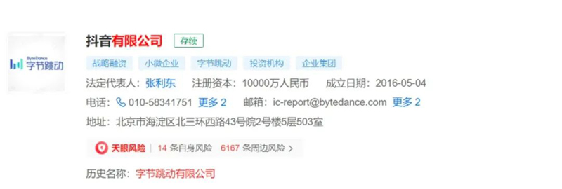 在国家企业信用信息公示系统上,北京字节跳动科技有限公司,也更名为北京抖音信息服务有限公司。