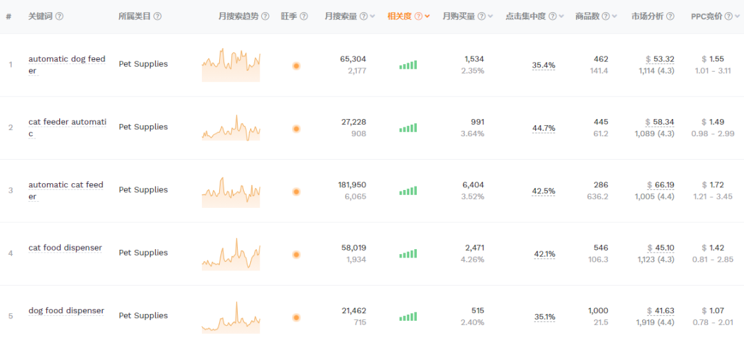 以“Automatic Feeder”为例,从卖家精灵数据中可看出来,月搜索呈上升趋势。
